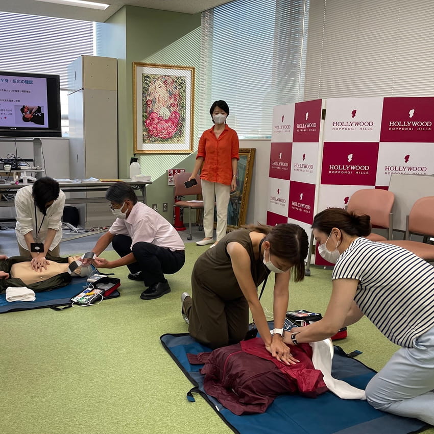 社内には、社員が気軽にヨガできるスペースもあり、日々のリフレッシュや運動習慣を自然に取り入れられる環境を整えています。社員一人ひとりが健康的に、心地よく働けるように、心と体のウェルビーイングを大切にした“ヘルシーなチームづくり”を進めています。AED講習も無料で定期的に行っています。
