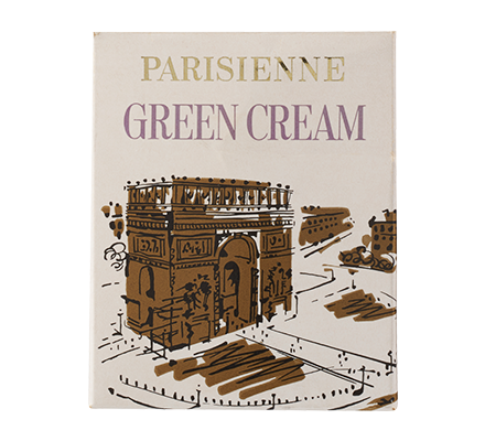 グリーンシリーズとして葉緑素を配合。ミルクとクリームで発売。パリジェンヌラインはメイ牛山がパリ視察後に開発した商品で、「巴里のおき土産」としてパッケージに凱旋門をデザインし、あこがれのパリとして好評でした。¥2500(発売当時) / 40g